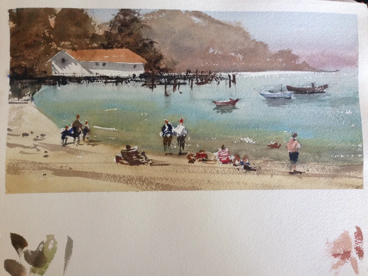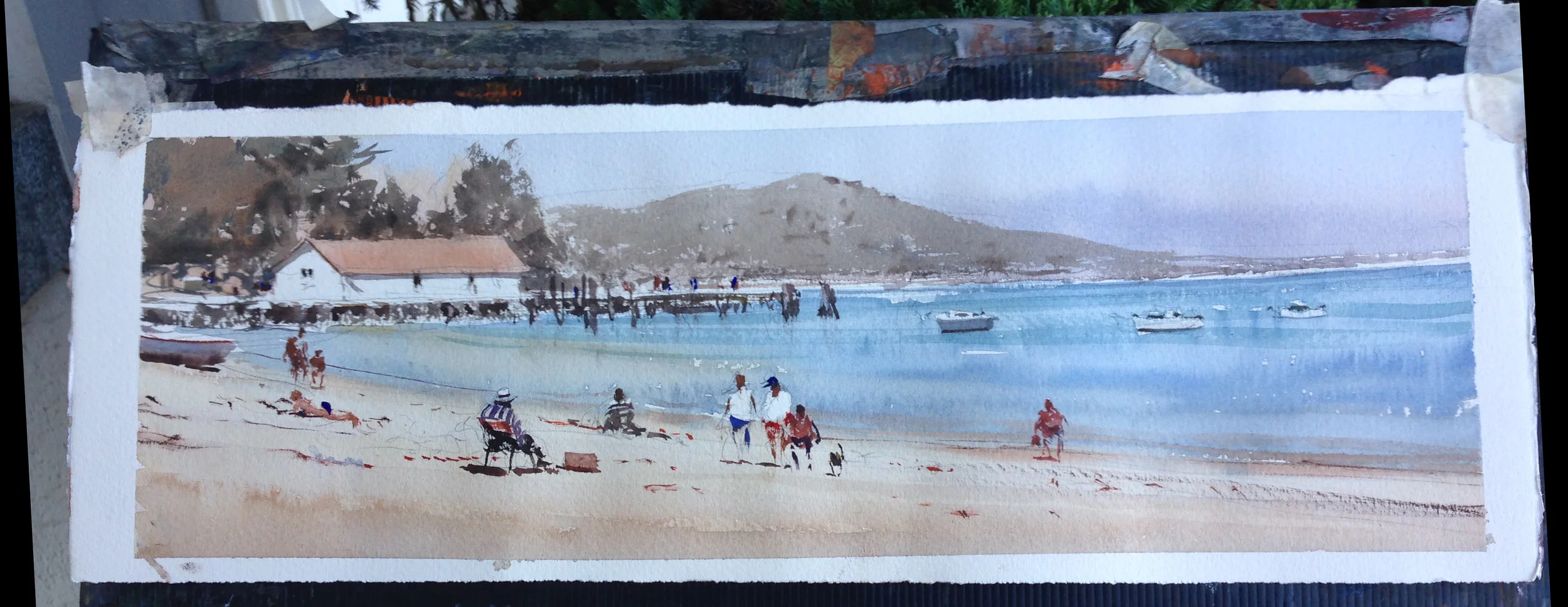 This is from Aquatic park. Our final piece. I shared this in the last post. Joseph painted on a long quarter sheet (22" x 7.5"). I would have liked to have done so too, but I did not carry that kind of backing with me. However, it pushed me to explore alternate formats. My piece is approximately 7.5 x 15". I enjoyed this quite a lot, and have been playing with format more since the workshop.