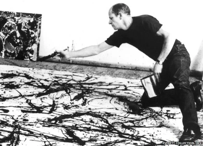 As I sat and thought about Liang's work for a while, Jackson Pollock came to mind. I admit, sheepishly, that I'm not particularly a fan of Pollock, but in the context of the Chinese calligraphy Liang is creating, I saw a way in. Some of Pollock's work is fantastically energetic. It's more than a "description" of the body in motion. Much like her calligraphy, it's a record of, essentially, a dance ... of a certain duration of time and space when he worked on that painting in a certain state of mind. Like an imprint in concrete with a child's name by it. That's interesting to me. However, being an artist, my first thought isn't "How do I get a print of that?" but instead "How do I experience making that myself?"
