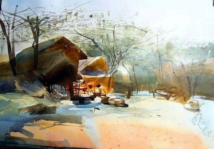 With watercolors it is, sadly, sometimes hard to find that send of bold brushwork. There's a long history of beautiful, relatively detailed, realistic work... atleast in western watercolor work. Still, if we hunt, we begin to see it in there, hiding from time to time.