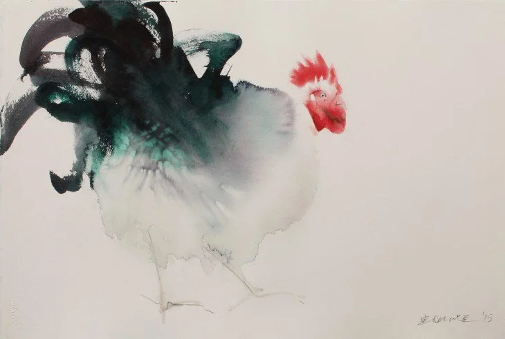 The goal is to marry your subject to the strokes, so that they begin to feel a bit like the calligraphy we saw Liang doing at the top of the post. Each artist begins to find different elements of their paintings where they can play with freedom (trees, legs, tails, etc), where the representational subject can dissolve into the brushwork underpinning everything. And much like Liang's calligraphy, I'm absolutely sure they're all dropping these strokes down on the paper and then leaving them alone, warts and all. The unadulterated stroke represents forever... that certain specific moment in time when it was made by a human hand. It casts a kind of time-and-space-traveling spell. If you go back and fiddle with it too much, you ruin the magic.