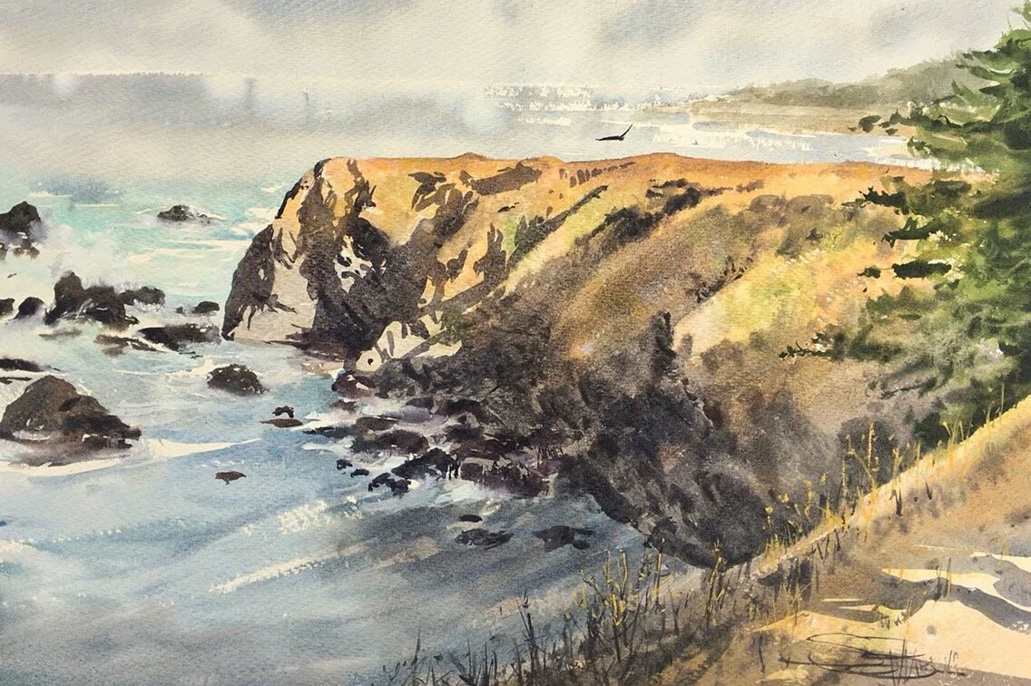 I’m teaching a weekend workshop in Mendocino. We’ll be working on notans, digging in to the logistics of painting plein air, and doing touch ups back in studio. Enrollment continues through the 12th of October. Attendees are required to be vaccinated. We’ll be wearing masks while indoors. Find out more here- PLEIN AIR WATERCOLORS AND NOTANS — Mendocino Art Center.