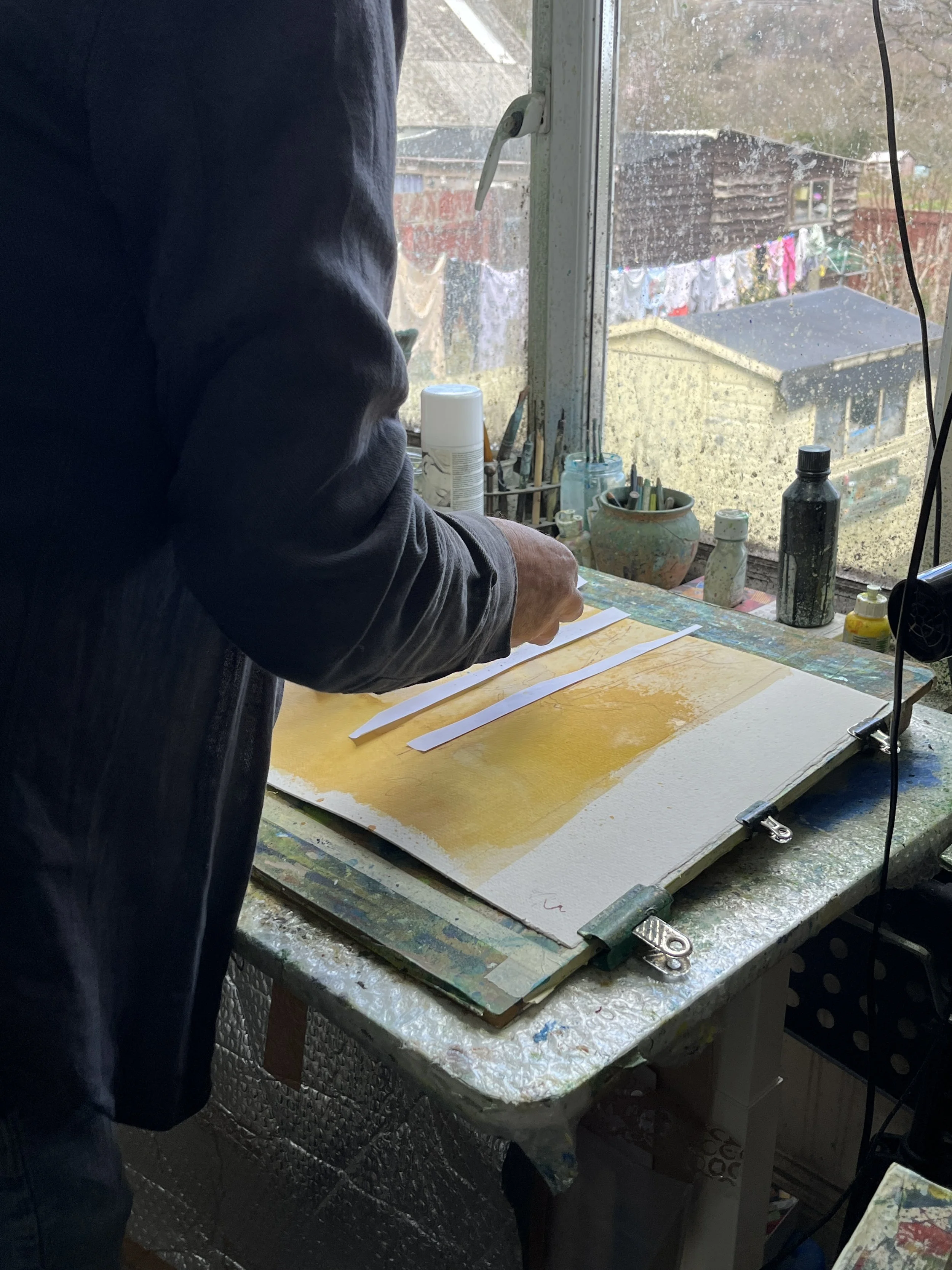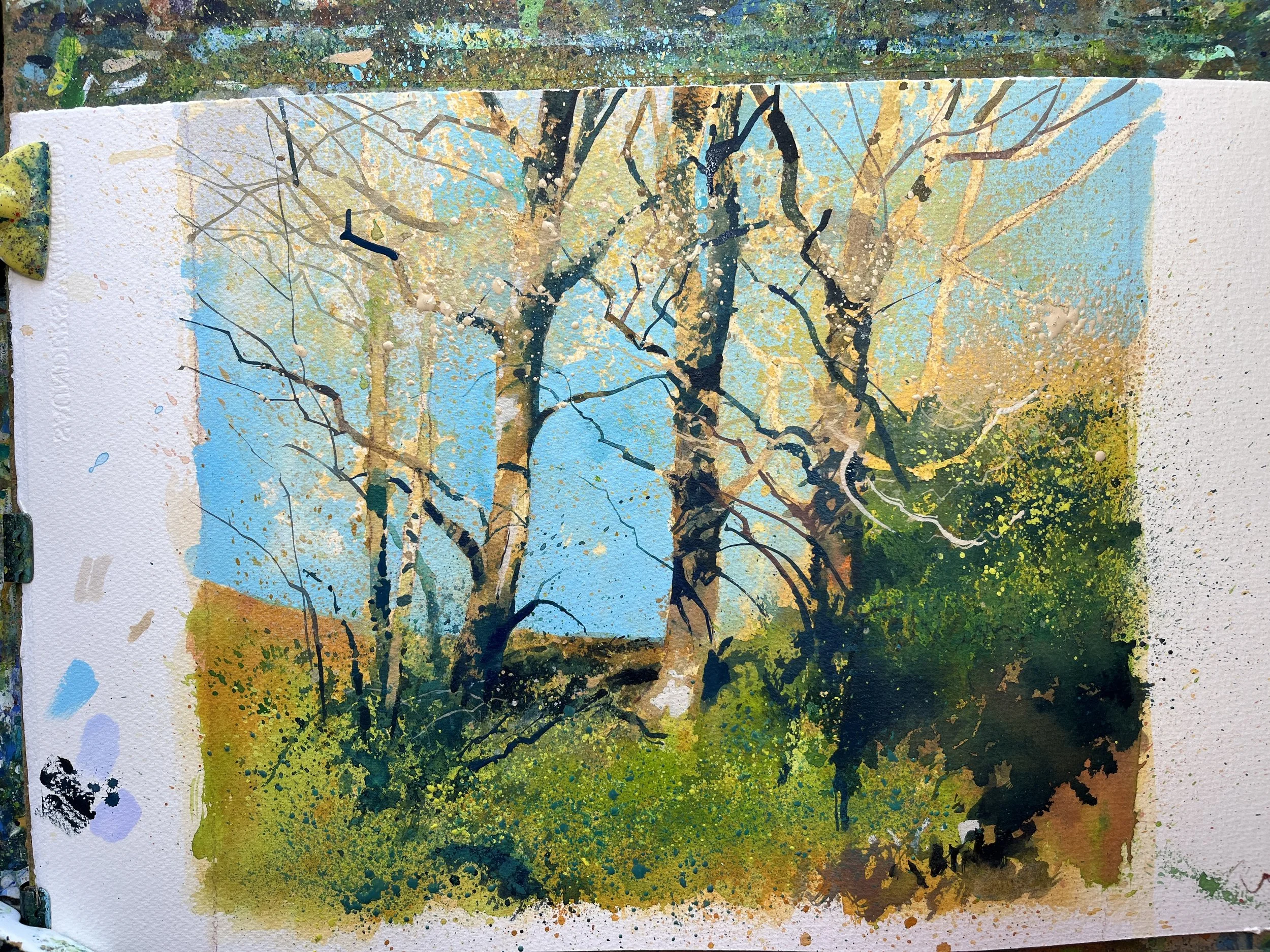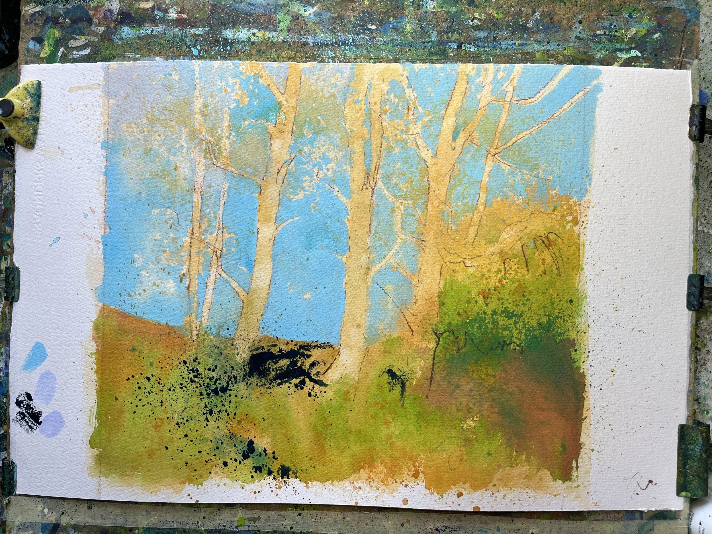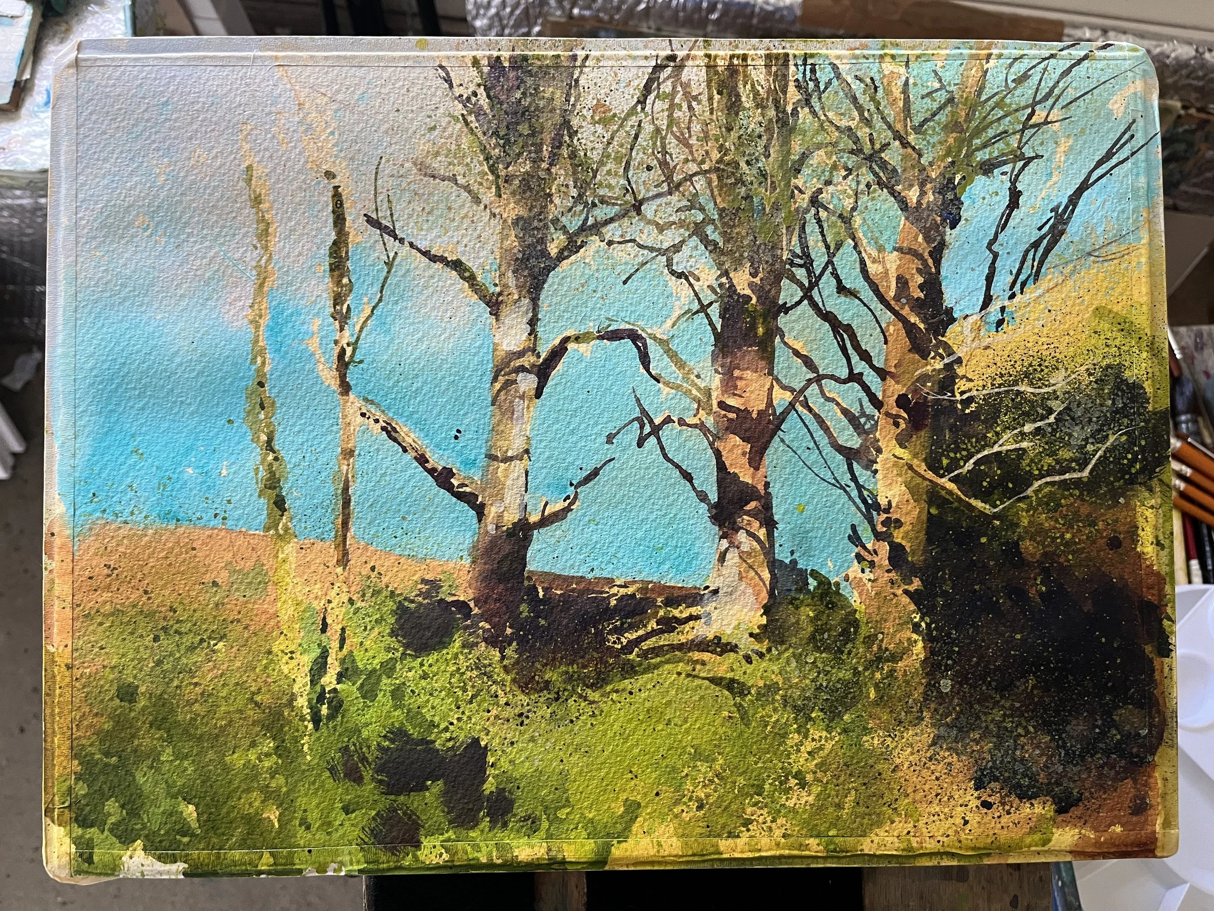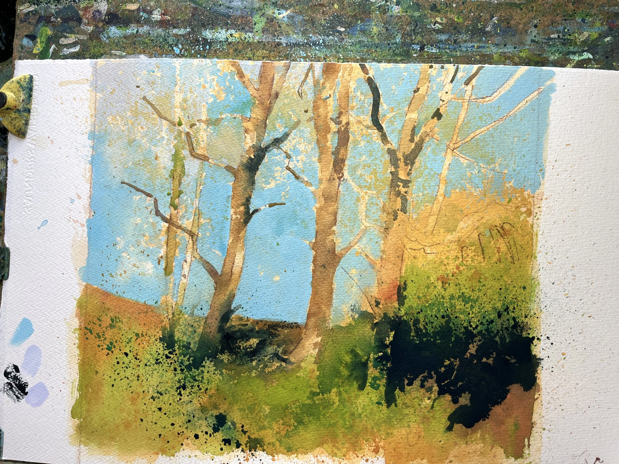 In the next post, I’ll share more of Richards (and my own) work over the final few days, as we try out painting on canvas with acrylics and then, on day 3, a return to watercolors on paper.